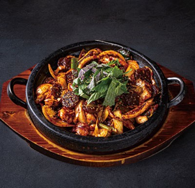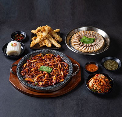 드시는 내내 따뜻하게 돌판에 조리한 오징어볶음